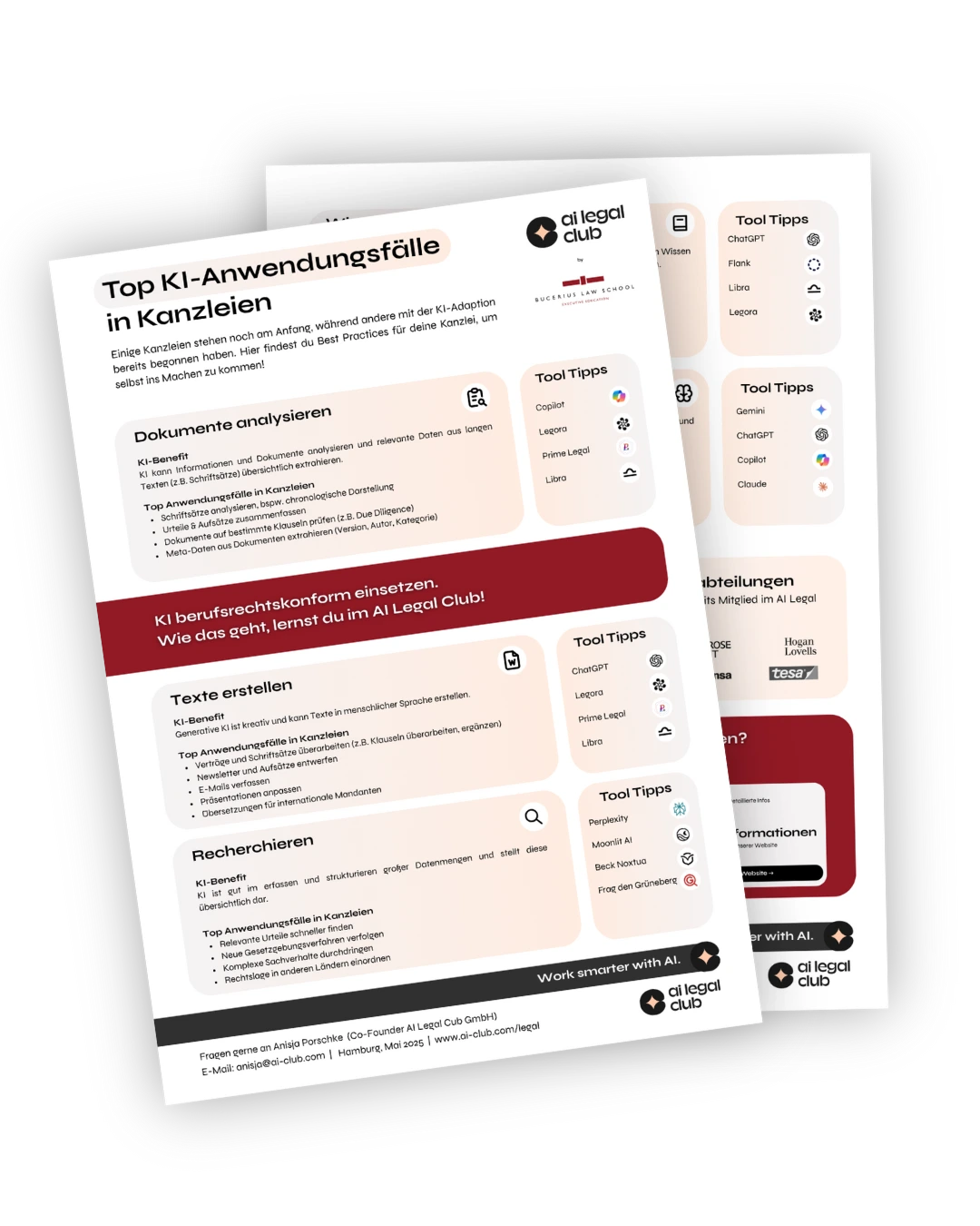 Konkrete Anwendungsfälle, bewährte Tools und erste Schritte für Kanzleien – kompakt und praxisnah aufbereitet.